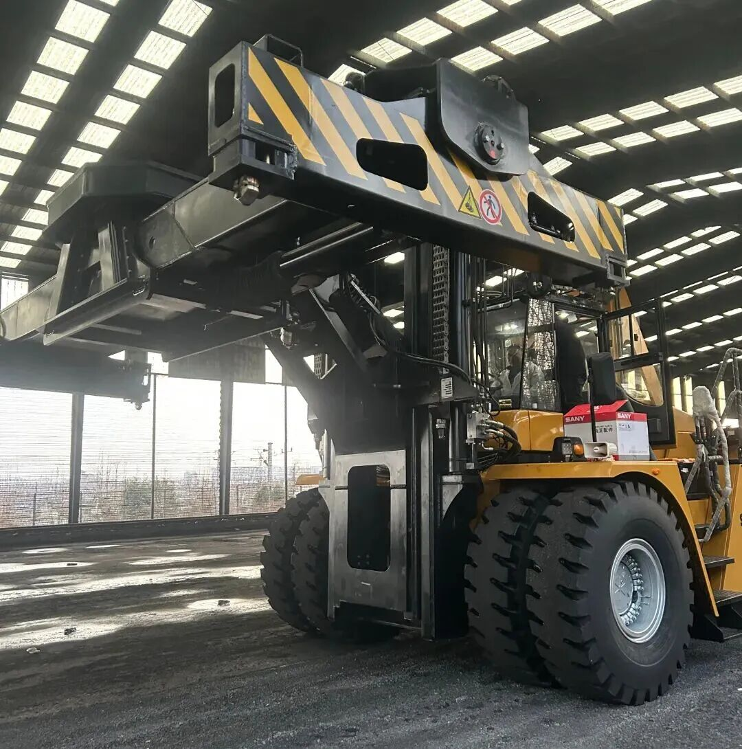 近日,一台专为铁路场景量身定制的46t重型叉车成功交付河北客户。该设备基于三一成熟的重型叉车平台研发,创造性地运用“叉刀倒置”思路,在确保作业高度的同时兼顾安全性与通过性,从根源上打通了站台集装箱装卸的堵点。