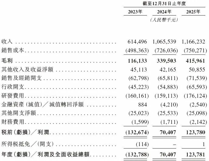 然而,通往资本市场的路却异常曲折:2021年冲刺科创板,半年后主动撤回;2025年转战港股,招股书失效;如今第三次闯关,终于带上了“盈利”这张关键入场券。数据显示,2024年极飞实现营收10.66亿元,净利润7040万元,首次扭亏为盈。2025年营收进一步增至11.66亿元,净利润1.24亿元,毛利率从18.9%提升至35.7%。