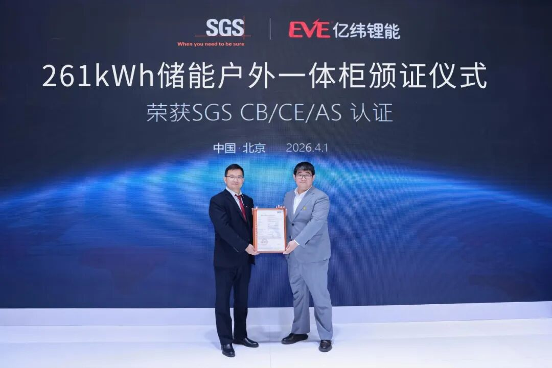此外,亿纬锂能 261kWh 储能户外一体柜荣获 SGS CB/CE/AS 三项认证,S6900 储能系统荣获 SGS CB/CE 认证,进一步加速全球化合规布局,为拓展海外市场筑牢根基。