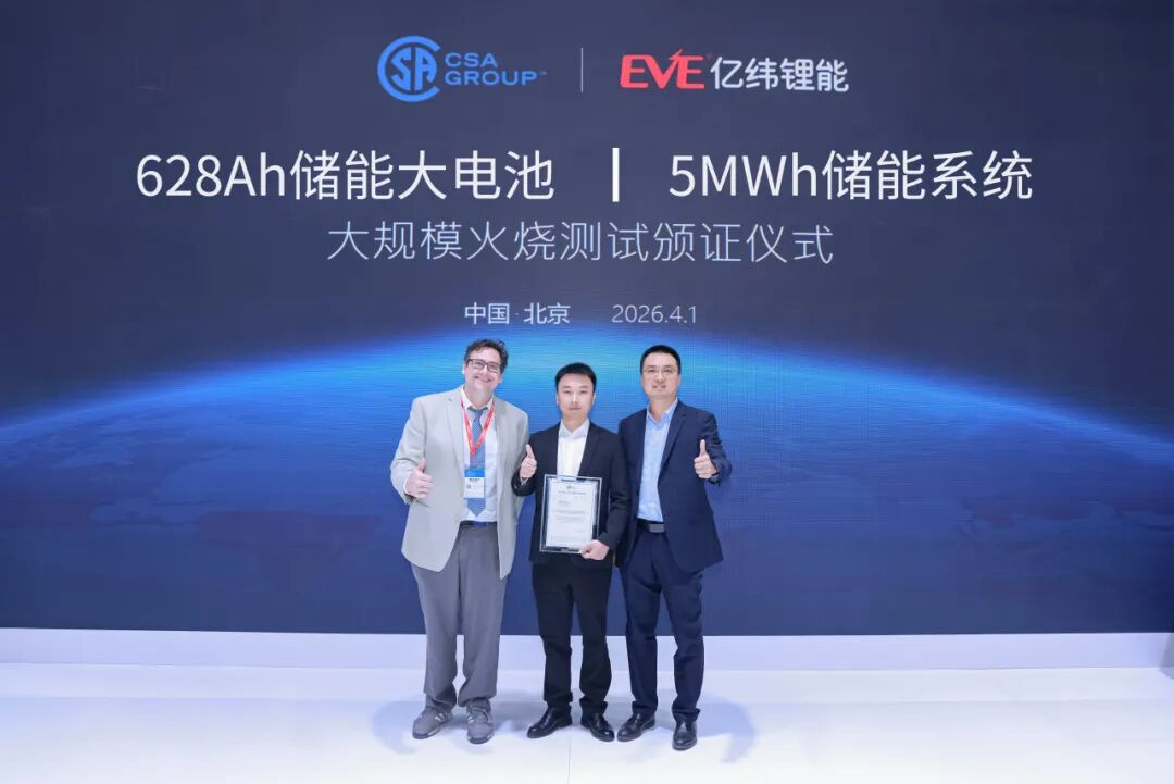 安全是储能产品的核心底线,亿纬锂能始终以严苛标准打磨产品安全性能。展会现场,CSA 集团为亿纬锂能颁发 628Ah 储能大电池 5MWh 储能系统大规模火烧测试通过证书,再次印证了亿纬锂能在大容量储能系统安全设计领域的深厚功底,也为行业安全技术升级提供了实践范本。