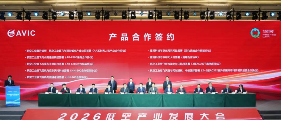 在产业合作方面,通飞与横琴粤澳深度合作区执委会就共同推进低空产业发展签署战略合作协议。沈飞与中邮无人机就共同规划无人机运营机场、开辟示范航线及制定相关行业标准等签署《战略合作协议》。直升机所、昌飞与深圳低空产业公司签署《AR系列无人机产业合作协议》。飞思通信与星网应用公司、深圳低空产业公司签订战略合作协议。民机试飞中心分别与白鲸航线、时的科技签署低空飞行测试验证合作协议。机载与白鲸航线签订战略合作协议。中航文化与广东省低空公司签署《共同举办2026广州国际“如翼冲天”飞行产业交易博览会战略协议》,与长春市文广旅局签署《航空文旅框架合作协议》。