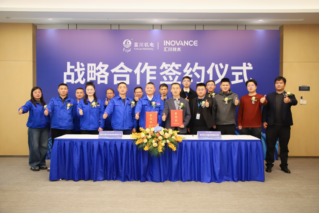 近日,汇川技术与富川机电科技有限公司(以下简称“富川机电”)在汇川苏州总部正式签署战略合作协议。双方将围绕线缆装备的驱动控制、系统集成及海外业务拓展展开深度合作,共同推动线缆行业向高端化、智能化、绿色化迈进。