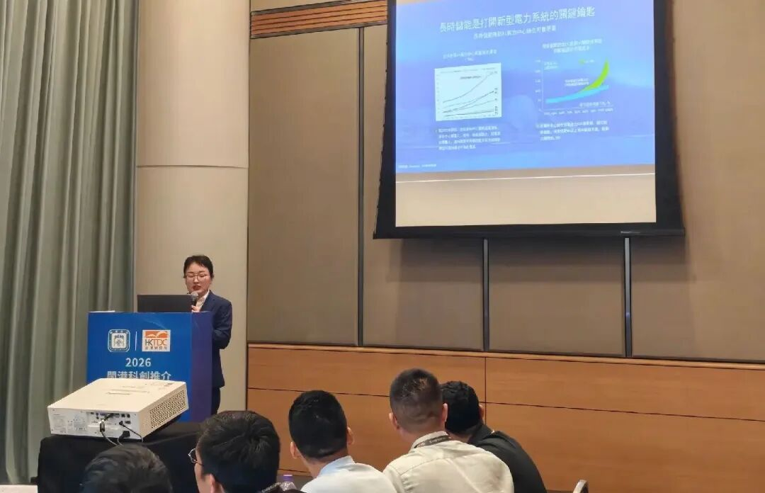 在闽港科创推介对接会路演活动中,海辰储能研发经理张芹以“海辰储能:长时储能开启新未来”为题发表演讲。她深入解读了长时储能的发展趋势,系统分享了公司在长时储能领域的技术突破、量产交付能力及国际化战略布局。