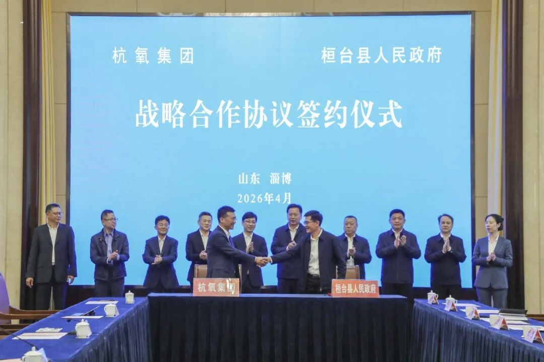 4月14日,杭氧集团与桓台县人民政府战略合作签约暨海力化工氯碱尾气高值化利用制氢充氢项目签约仪式举行。