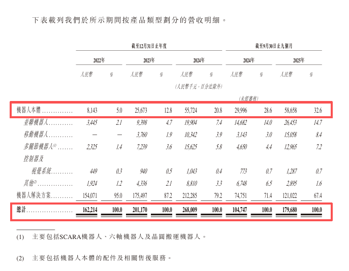 尤其值得关注的是,机器人本体的营收从0.26亿元增长至1.24亿元,复合年增长率超过118%,在总收入中的占比也从12.8%提升至31.9%,显示出核心业务的强劲增长势头。