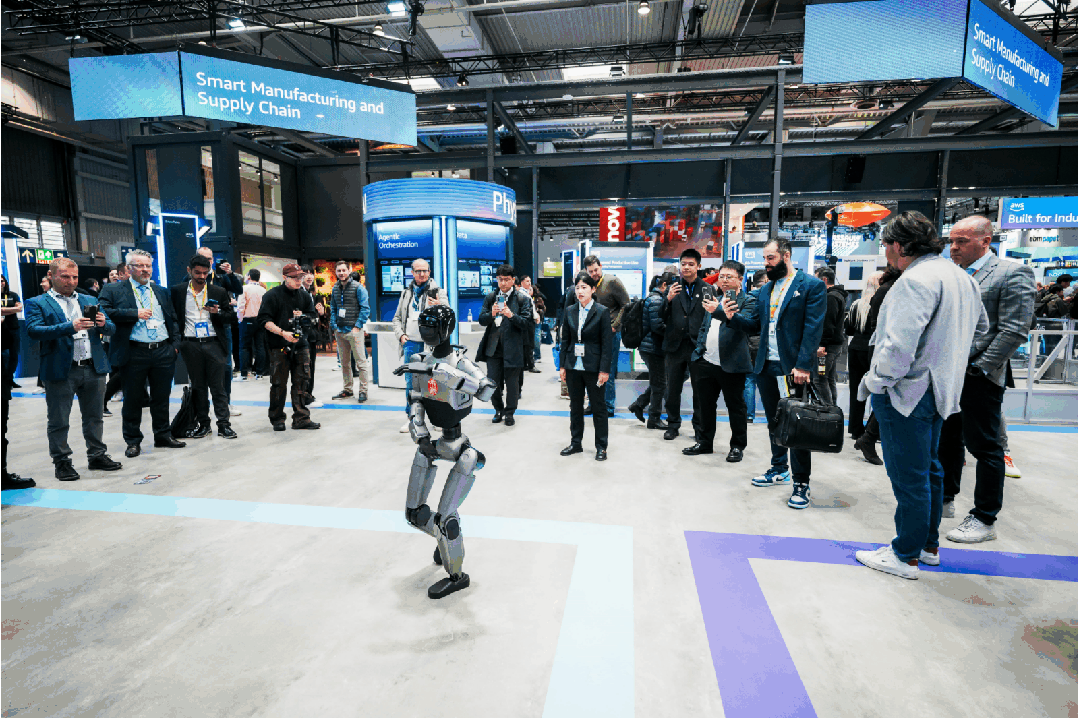 展会期间,中联重科还受邀开展多场主题演讲,全面推介人形机器人操作系统与人形机器人产品,详细解读公司基于AI原生与云原生的智能制造整体解决方案,吸引了来自全球各地的专业观众、行业专家及媒体记者参与交流、深度互动。