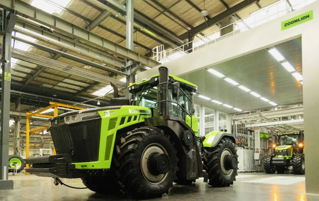 ▲全球最大马力轮式拖拉机DX7004在开封智能工厂下线