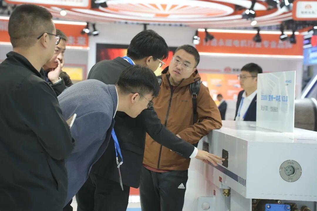展会现场,3300V变频一体机、大功率永磁电动滚筒、矿用高压组合变频启动器、10kV永磁直驱一体机等矿用永磁直驱爆品实物悉数亮相。