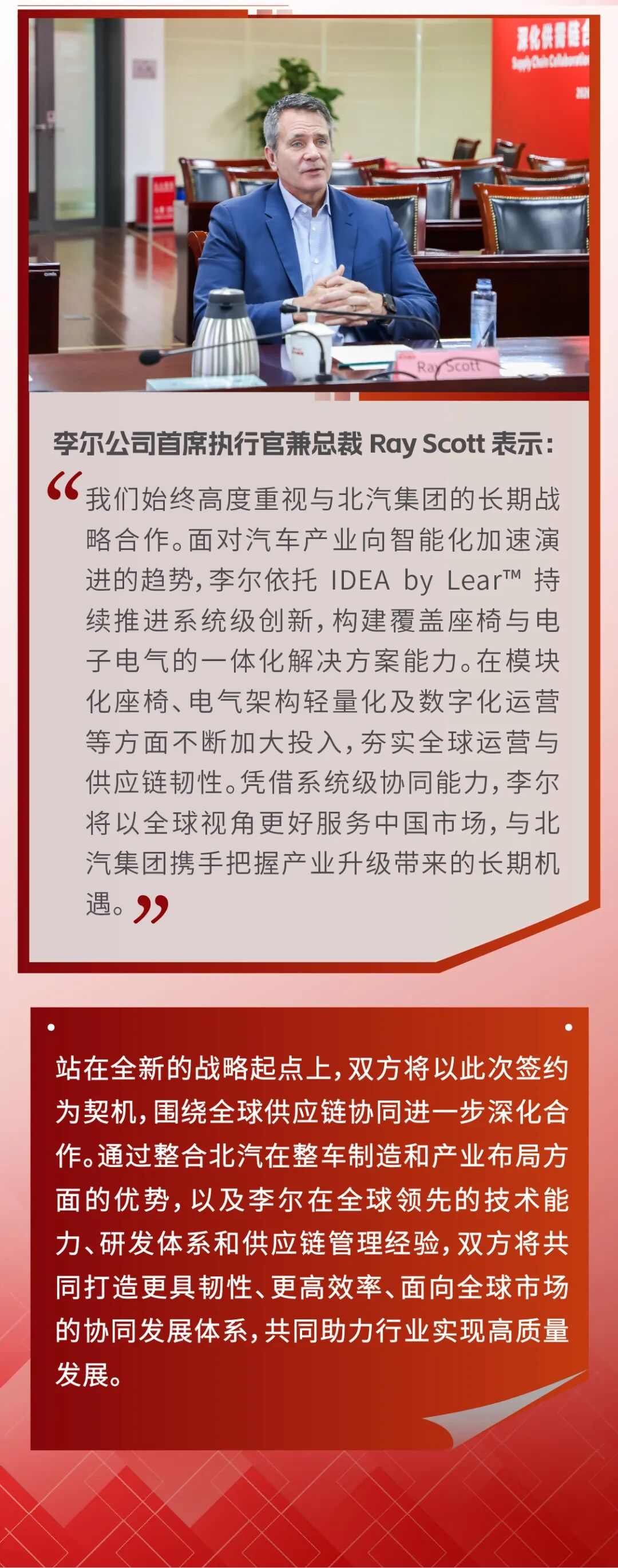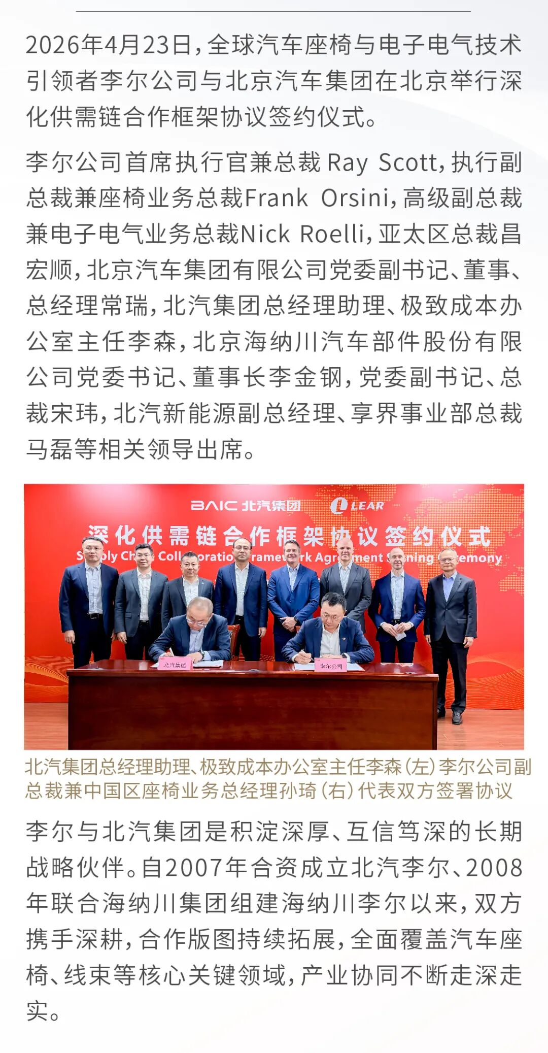 李尔公司与北汽集团签署深化供需链合作框架协议