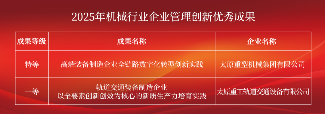 太重两项目获评机械行业企业管理创新优秀成果
