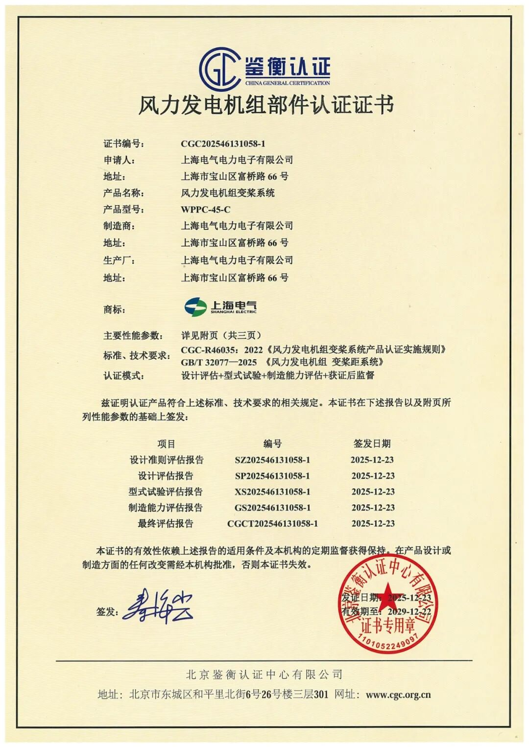 电力电子变桨系统顺利通过新版国家标准认证