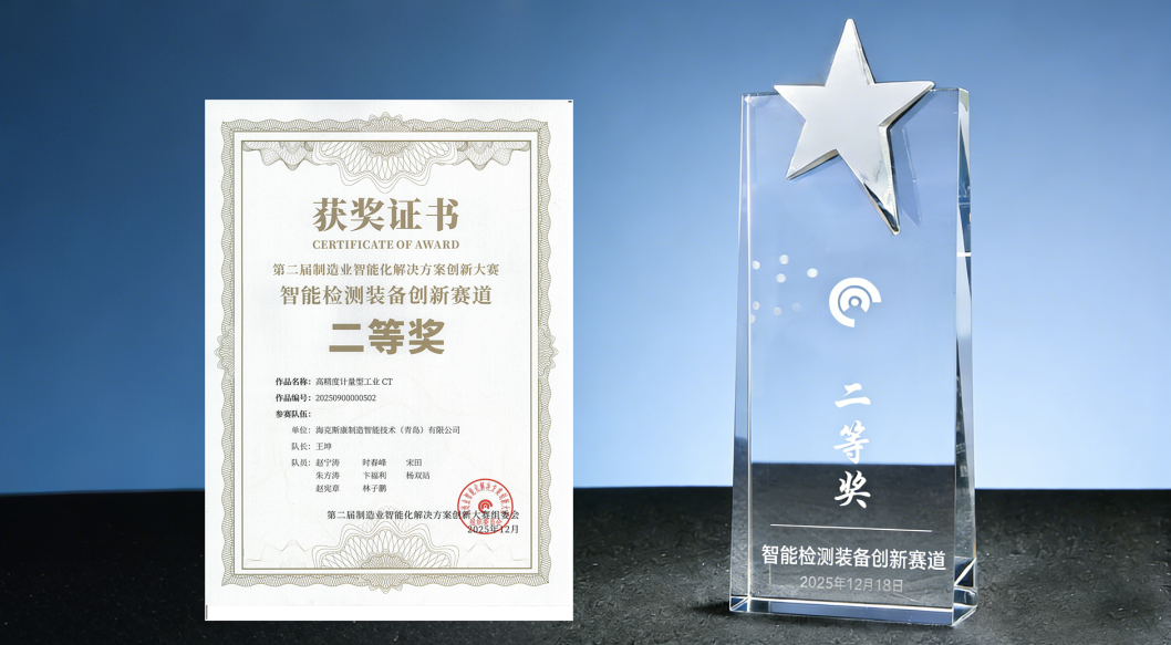 经过近三个月的全国性激烈比拼,海克斯康制造智能技术(青岛)有限公司凭借高精度计量型工业CT,在竞争激烈的“智能检测装备创新赛道”中脱颖而出,荣获二等奖!