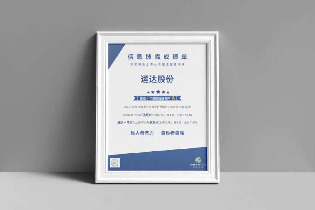 运达连续4年荣获上市公司信息披露最高评级“A”级