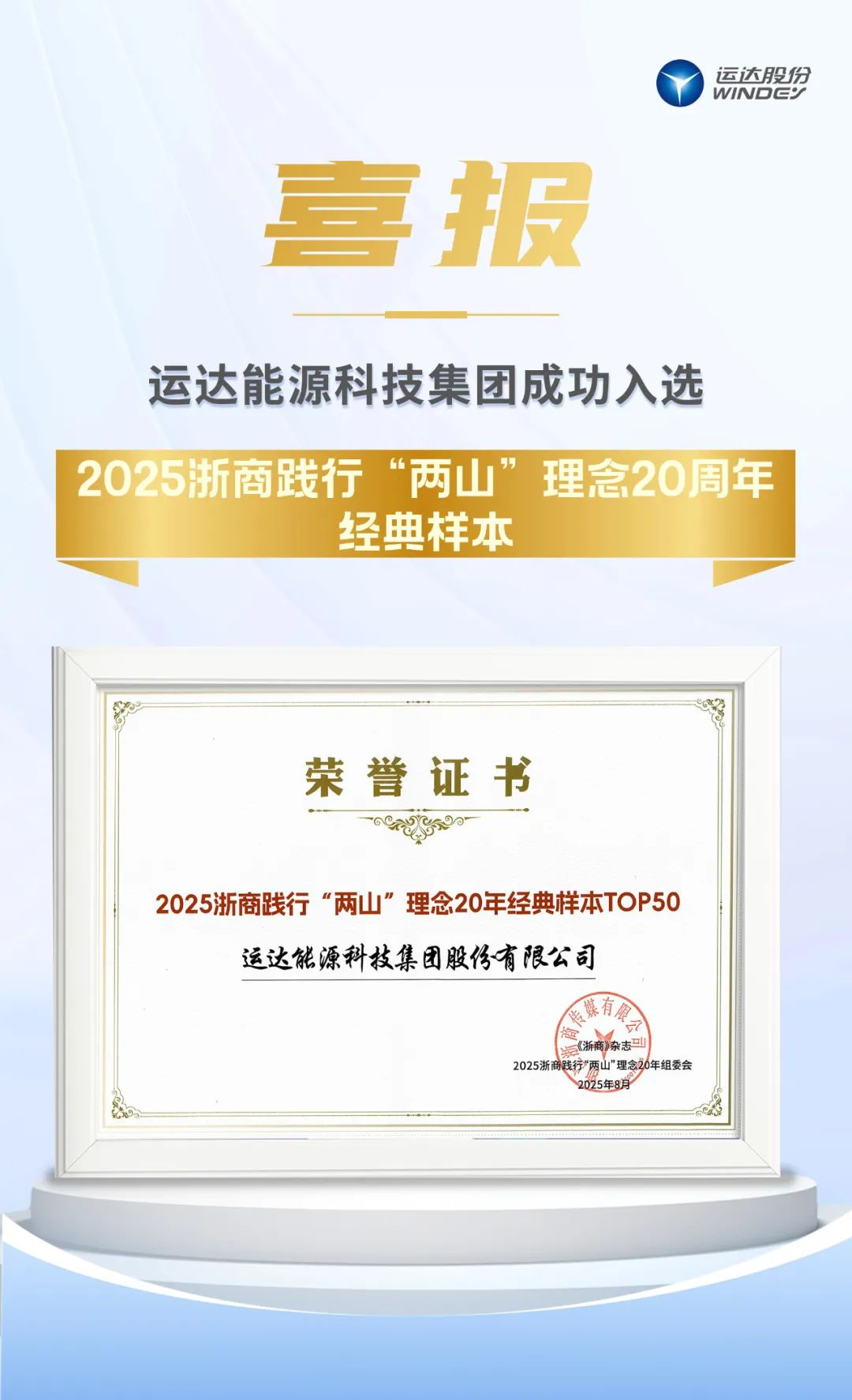 运达能源科技集团入选“2025浙商践行‘两山’理念20周年经典样本”