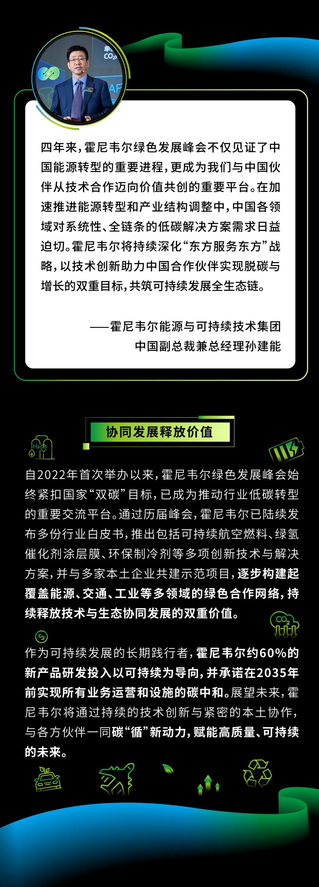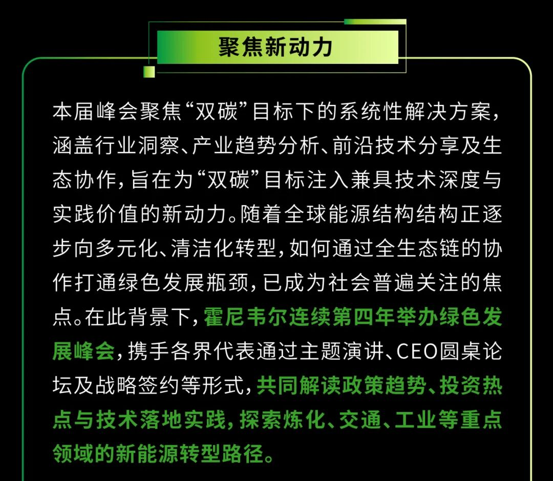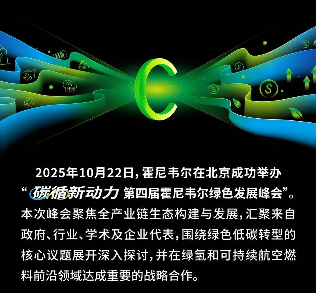 2025年10月22日,霍尼韦尔在北京成功举办碳循新动力第四届霍尼韦尔绿色发展峰会本次峰会聚焦全产业链生态构建与发展,汇聚来自政府、行业、学术及企业代表,围绕绿色低碳转型的核心议题展开深入探讨,并在绿氢和可持续航空燃料前沿领域达成重要的战略合作。