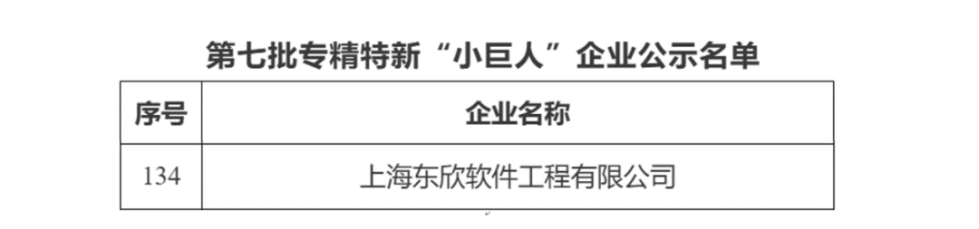 近日,上海市经济和信息化委员会公示第七批国家级专精特新“小巨人”企业名单。公司旗下子公司——上海东欣软件工程有限公司凭借在船舶领域信息化建设的硬核实力与行业引领地位,成功跻身国家级专精特新“小巨人”企业行列!