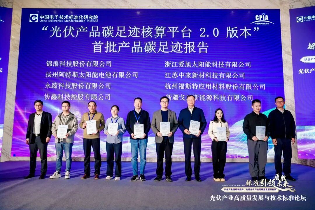 论坛期间,备受关注的光伏行业碳足迹核算平台2.0版本正式发布。作为该平台的重要应用成果,江苏中来新材科技有限公司率先获颁基于该数据库的产品碳足迹报告。数据显示,中来新材推出的1㎡光伏背板产品(FFC-JW3010(plus))碳足迹仅为1.6kgCO₂e/m²,为行业提供了具有现实参考意义的低碳样本。在全球绿色贸易壁垒逐步增强的背景下,这一成果具有重要战略意义。欧盟等发达地区正加快构建严格的碳准入机制,高碳产品未来或将面临市场准入门槛与高额碳税风险。在“双碳”战略推动组件向双面化、高效率、大尺寸发展的进程中,供应链各环节的碳减排能力,正成为企业参与国际竞争的核心要素。
