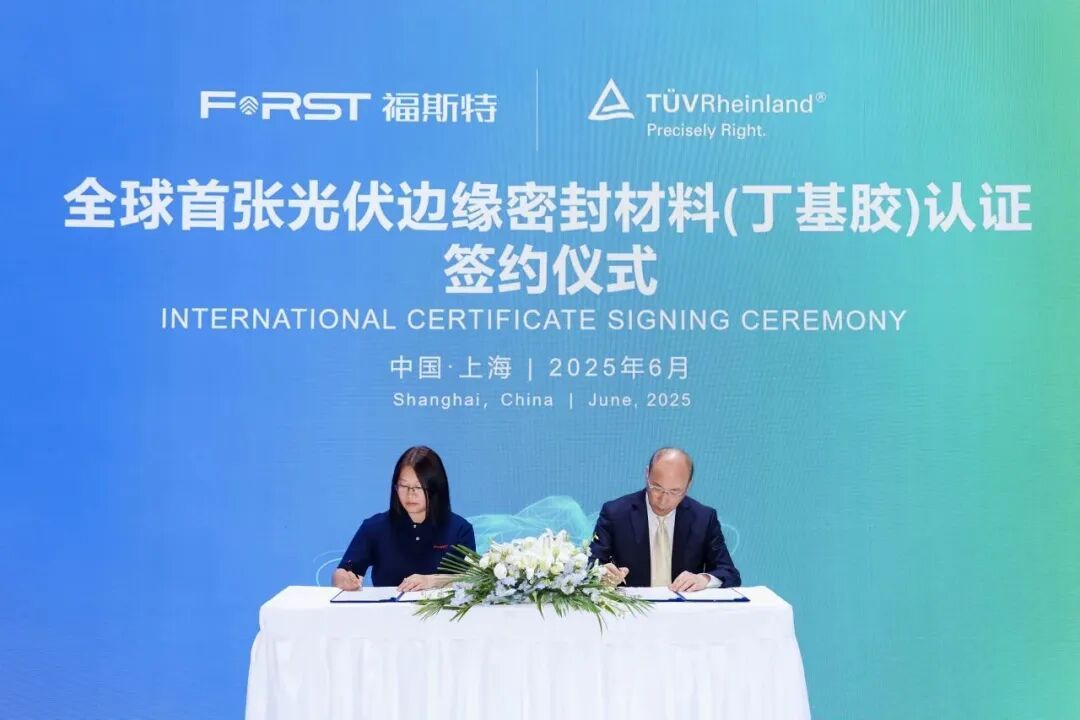 福斯特于六月与德国莱茵集团旗下的专业检测机构——TÜV莱茵签订了合作协议,共同致力于IEC62788-5-1标准的解读工作,并参与了边缘密封材料的相关测试项目。通过持续的技术交流与合作,双方共同推进了光伏组件边缘密封材料测试技术要求的完善与提升,成为该光伏材料新兴领域的技术先锋。