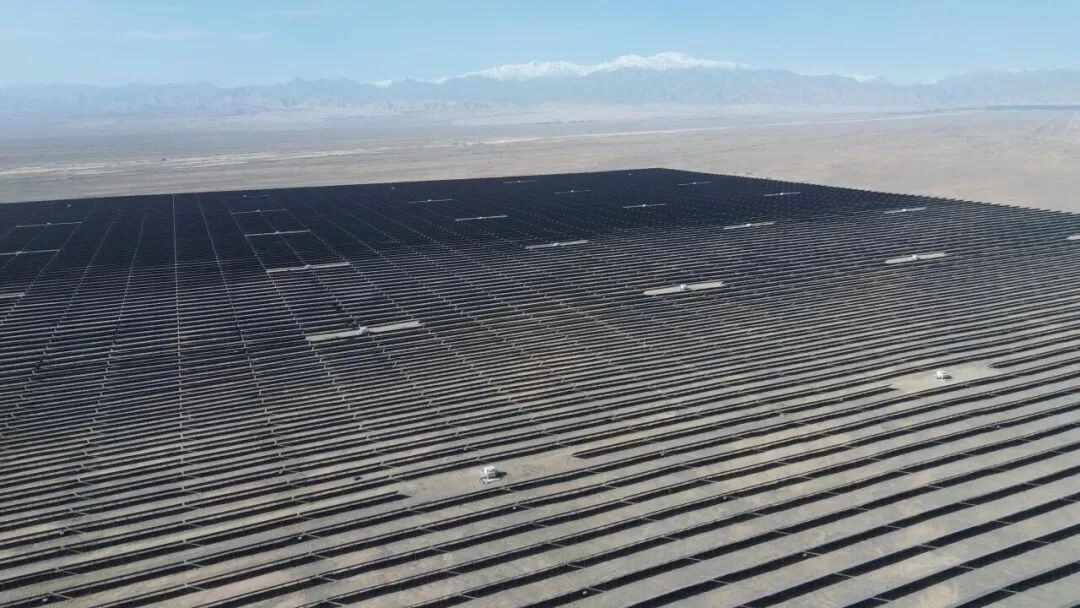 在广袤无垠的新疆喀什大地,一片浩瀚的沙海与蔚蓝的光伏板交相辉映,勾勒出一幅壮丽而神秘的自然画卷。昔日黄沙漫卷、寸草难生的荒芜戈壁上,英吉沙500MW光伏治沙项目镶嵌其间,完成了一次绿色能源与生态修复的“和谐共舞”,将这片荒漠实现从"沙害"到"绿能"的华丽转身。