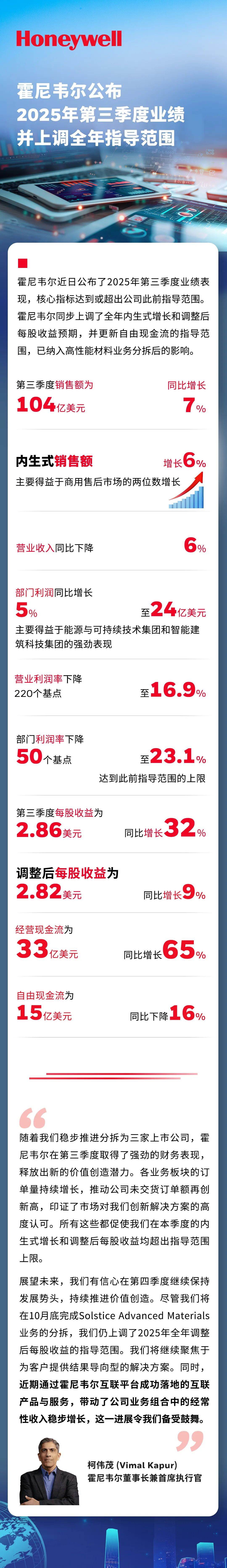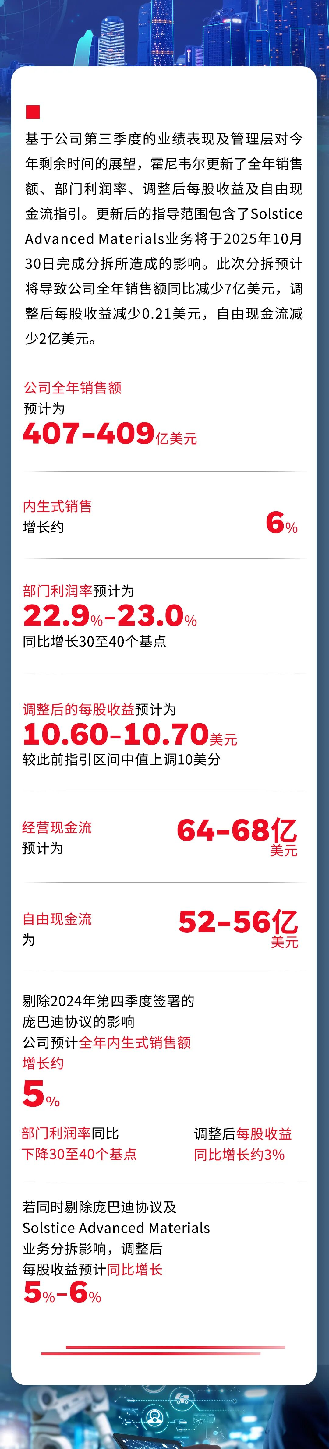 霍尼韦尔公布2025年第三季度业绩并上调全年指导范围