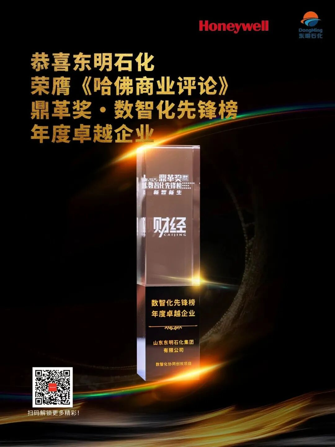 霍尼韦尔与山东东明石化集团(以下简称“东明石化”)在精益管理与数智化融合方面的卓越成果,摘得“鼎革奖·数智化先锋榜数字化服务奖”荣誉。