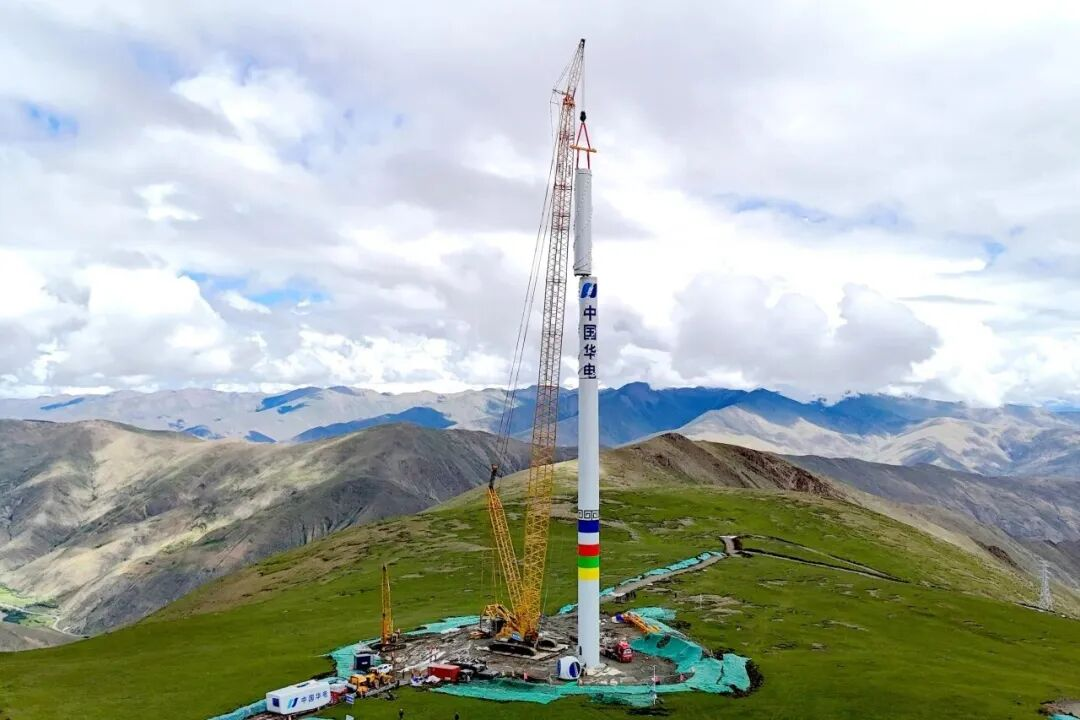该项目最高风机点位海拔达5370米,超越了珠峰大本营的海拔高度,创下全球风电在建项目的海拔最高纪录。