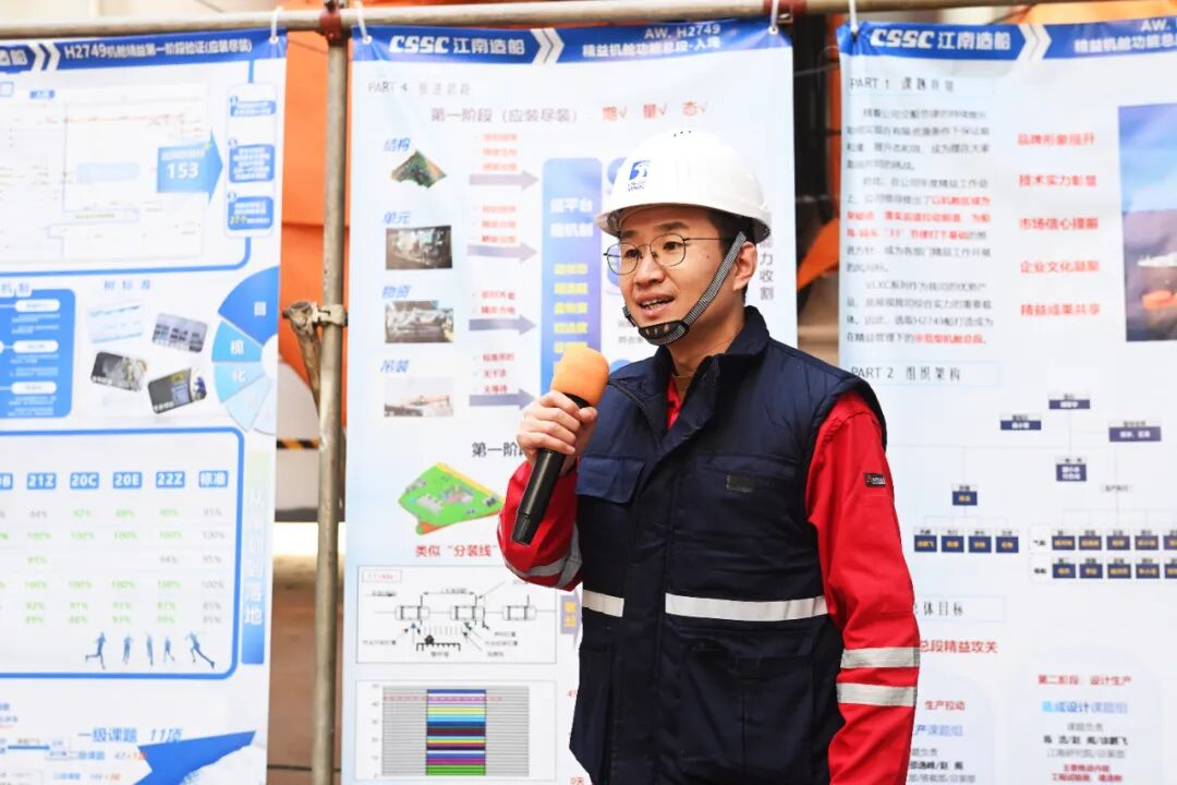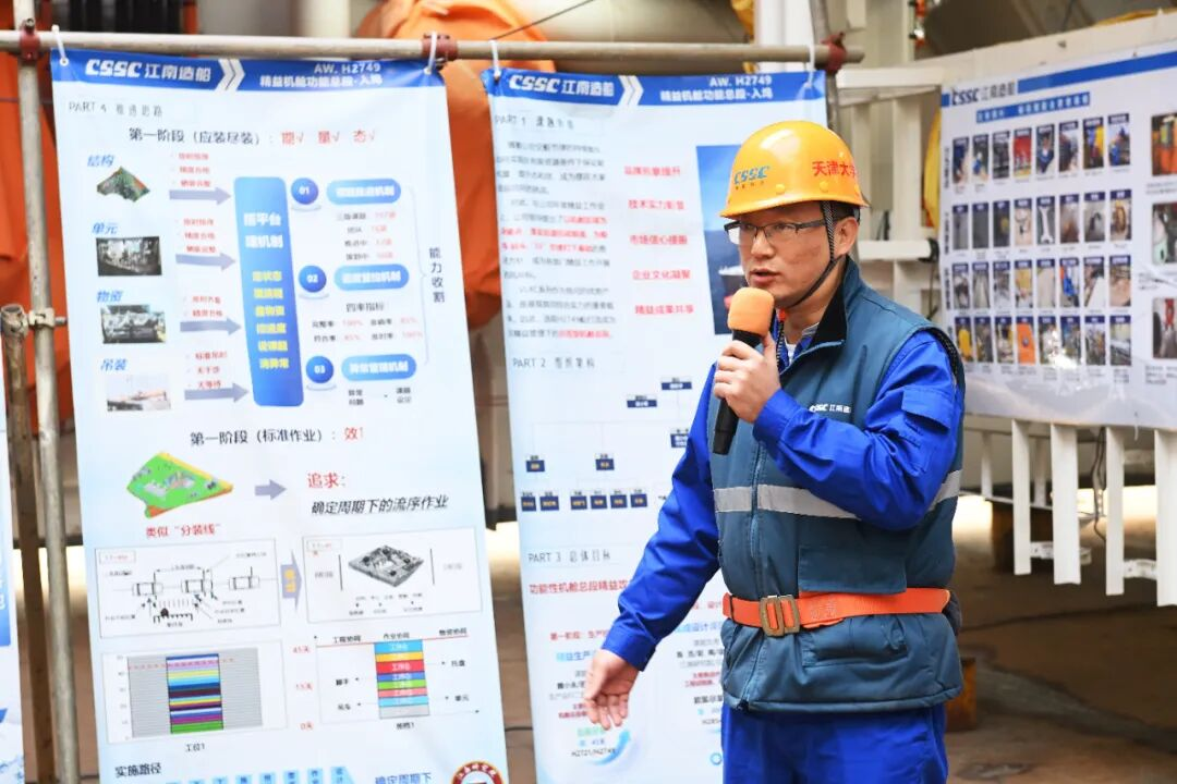 江南研究院机舱区域所所长徐鹏飞致开幕词,各部门进行了成果展示。肖文林充分肯定了机舱总段功能性总段的成果,这是所有部门共同努力以及船东、船检和各方支持的结果。他表示今日的江南机舱精益只是一个起点,未来将越走越远、越做越好、越来越快。