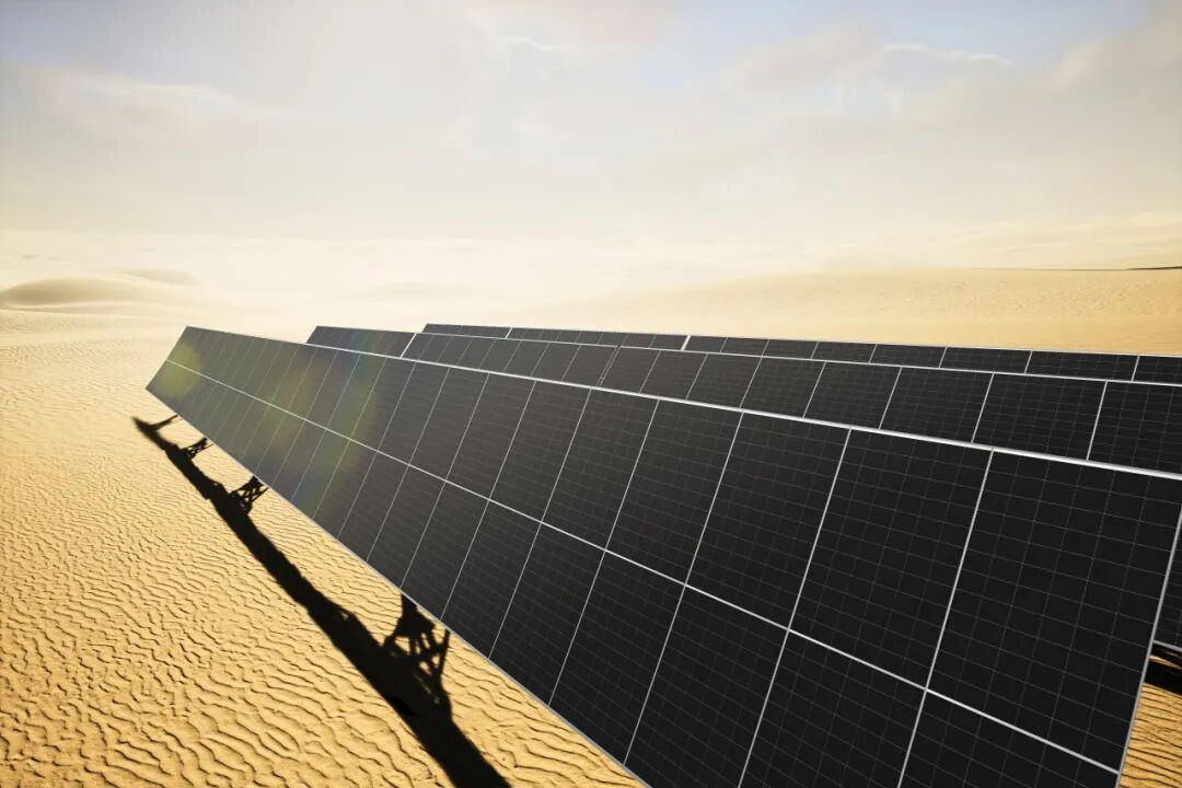 项目建设面临着极端的环境挑战:风沙活动频繁,8级大风可使沙丘以60-70公里时速移动;气候极度干旱,蒸发量是降水量的数十倍;地表为盐碱地沙漠,昼夜温差极大。这种严酷的工况对光伏组件的耐磨性、抗腐蚀性、抗隐裂能力以及在极端温差下的发电稳定性提出了苛刻要求。