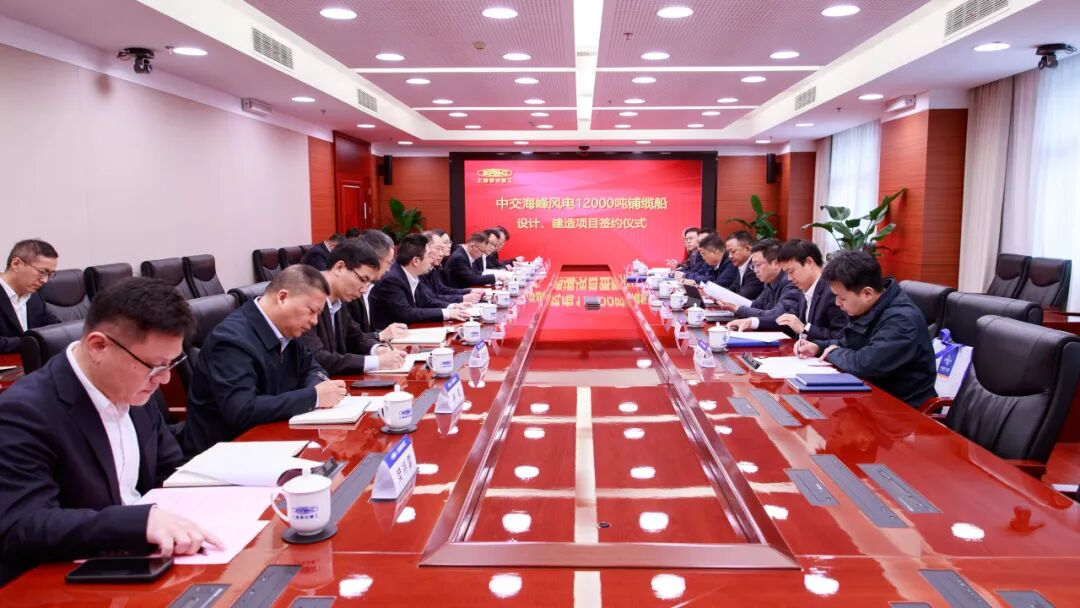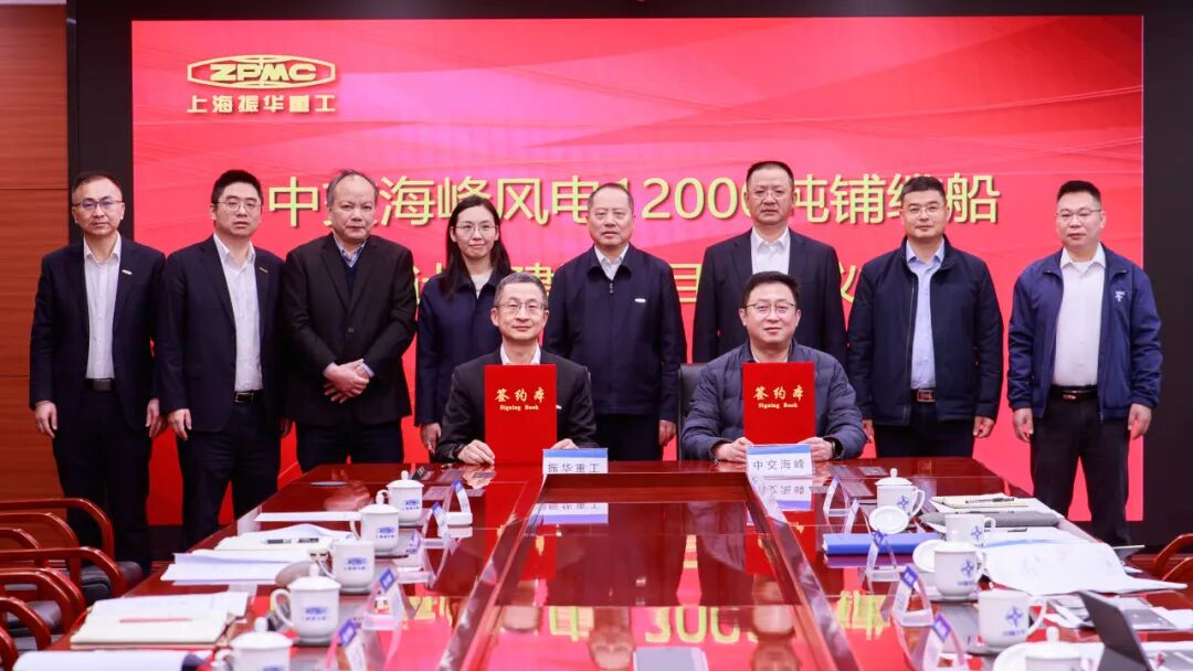 3月8日,中交海峰风电12000吨铺缆船设计建造项目在上海振华重工集团总部签约。中交三航局副总经理、中交海峰风电党委书记、董事长孙伟明,上海振华重工集团党委常委、副总裁张健出席仪式。