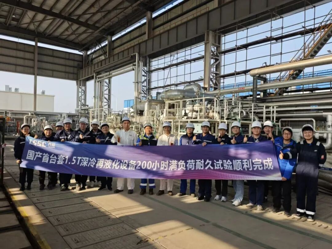 近日,国内首台套1.5吨/小时船用深冷再液化装置在江南造船与船东、船级社代表共同见证下,顺利完成LNG真实工况下的 200小时连续工厂验收试验(FAT),并已顺利安装到在建LNG船上。