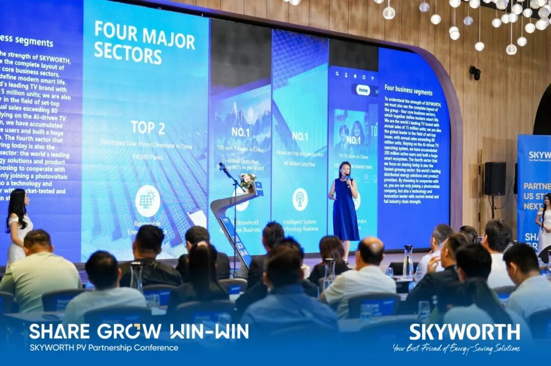 品牌战略发布环节,创维光伏肖运女士介绍了公司全球布局与东南亚本地化路径。她阐述了创维光伏如何通过调整品牌定位、服务体系与生态能力,深度适配马来西亚市场环境,协助合作伙伴在当地构建可持续发展的竞争业务。