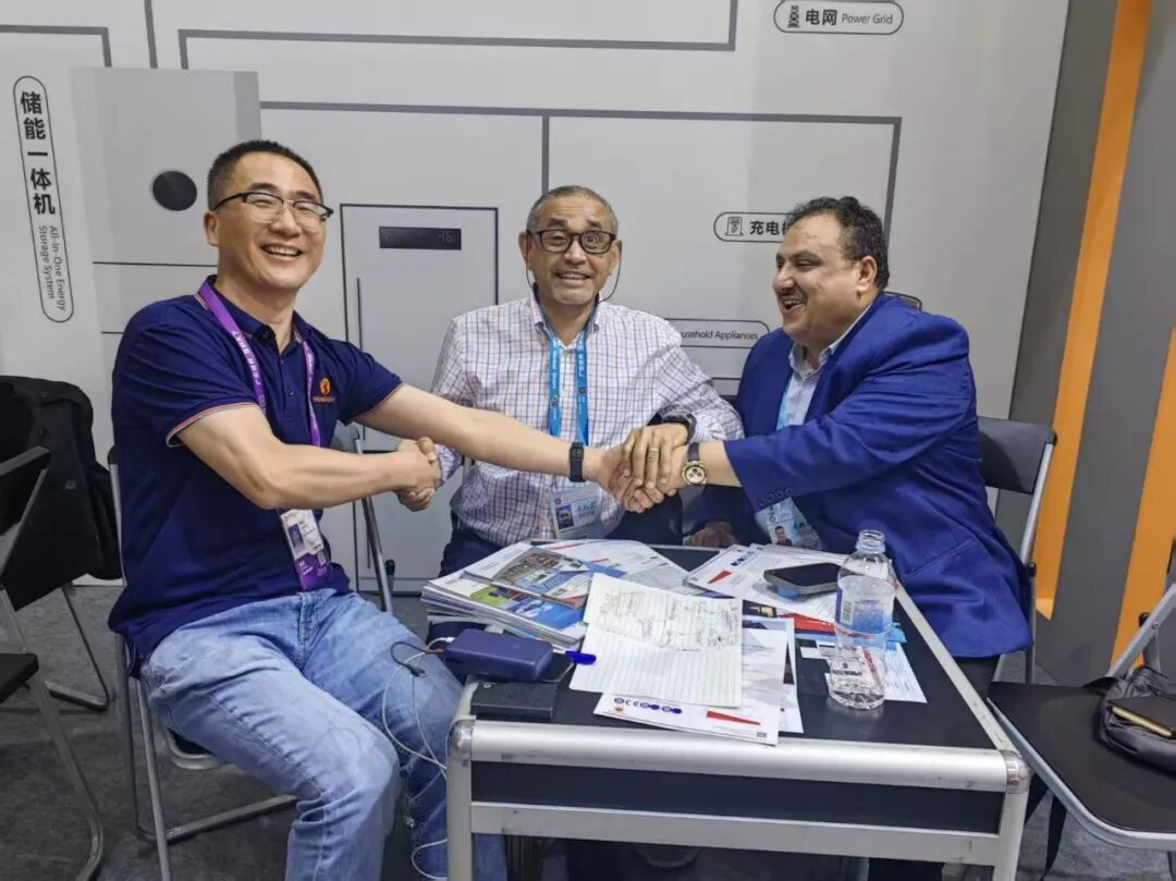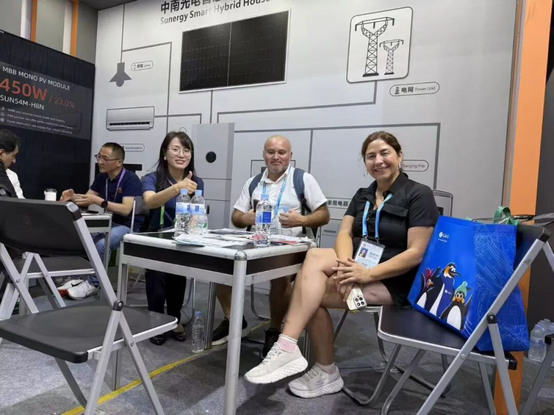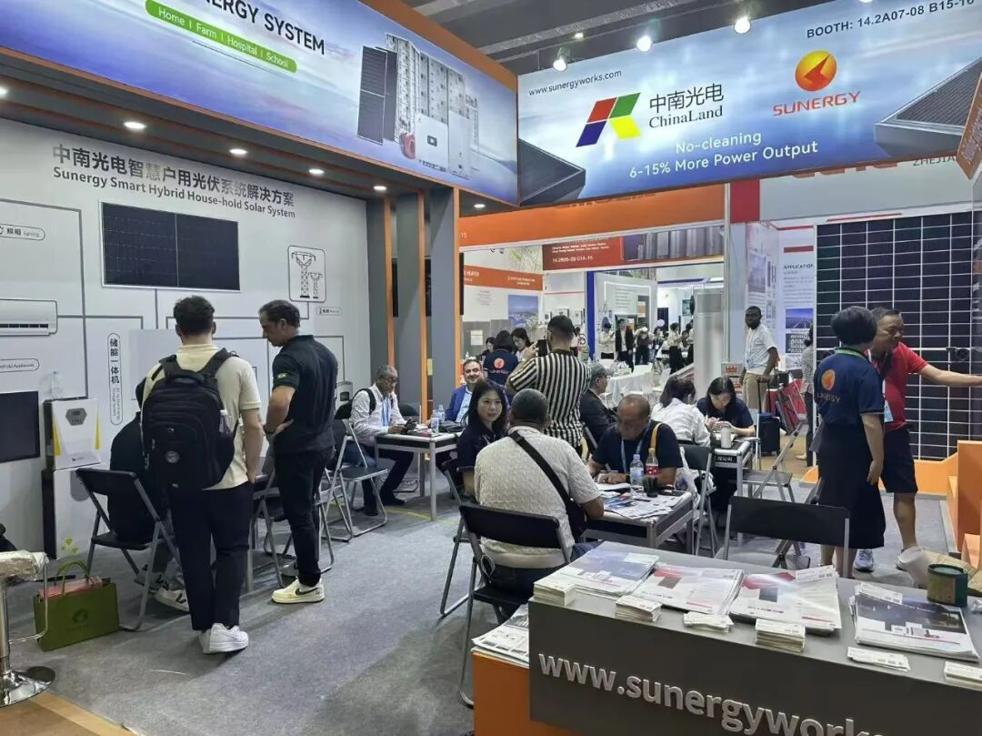 开展首日,中南光电展位便吸引来自欧洲、东南亚、非洲、澳洲等地区的大量采购商驻足洽谈。客商对公司“系统为主、组件为辅”的方案高度认可,尤其关注产品的高安全性、长寿命、智能运维等核心优势,多家企业现场达成初步合作意向,期待引入中南光电方案推动当地绿色转型。