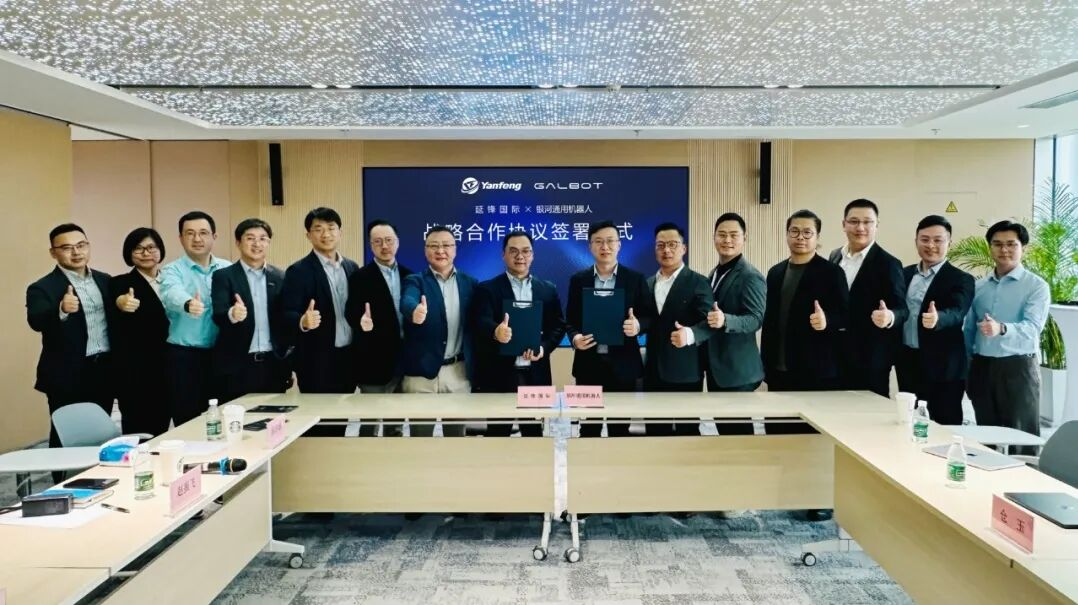 此次战略合作协议,由延锋国际总经理臧纯高与银河通用机器人联合创始人姚腾洲共同签署。双方将以规模化落地为导向,联合攻克具身智能前沿技术,着力打造可复制、可推广的工业应用产业模式,为智能制造从“样机局部演示”迈向“真产线实战”树立全新标杆。